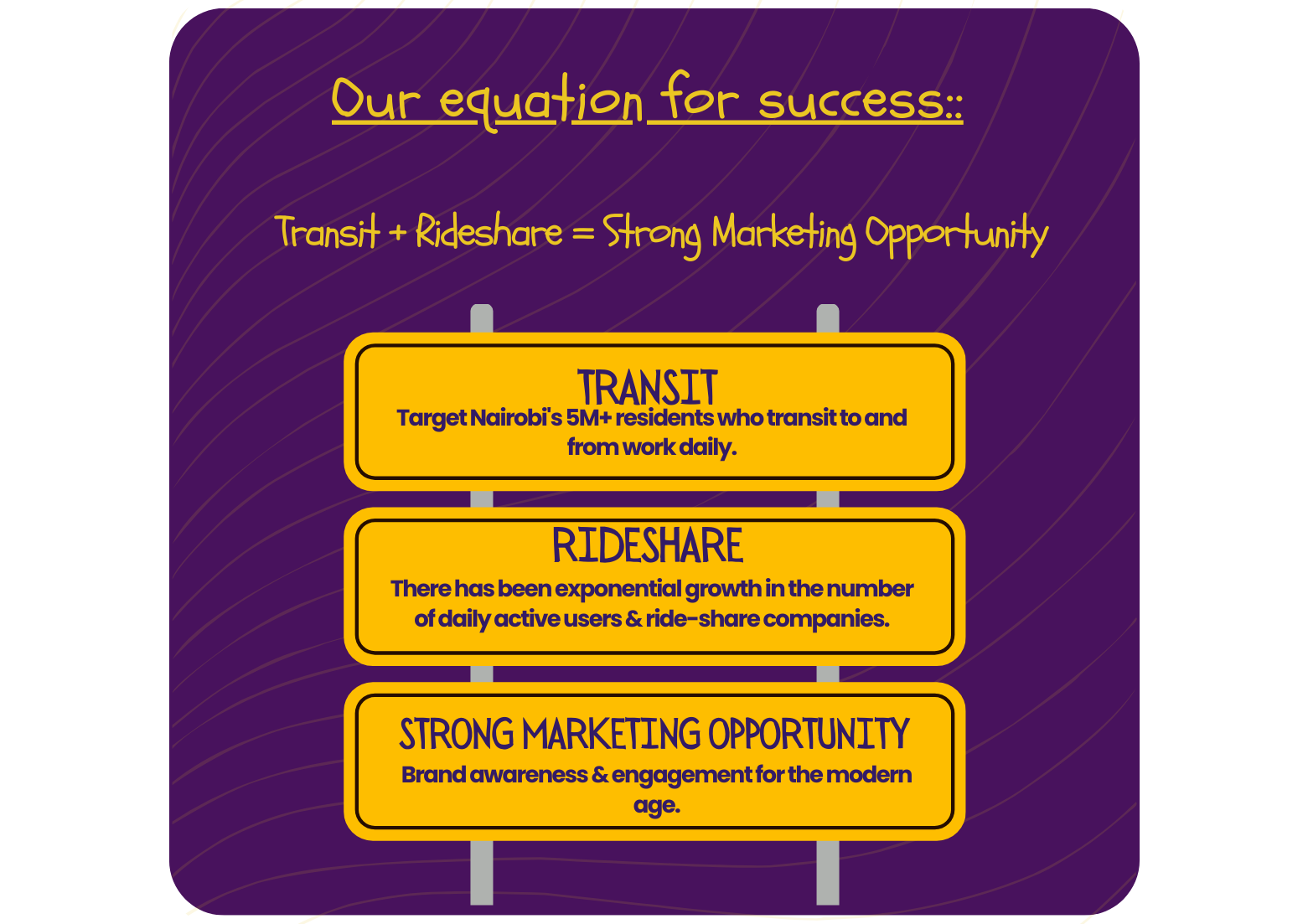 Be Seen Media Kenya is reshaping advertising by leveraging a fleet of 150+ Uber and Bolt taxis as powerful brand ambassadors. Our innovative approach offers a unique and impactful way to connect with your target audience in today’s evolving market. With Nairobi’s vast commuter population and the growing user base of rideshare services, our platform presents an exceptional opportunity to elevate brand visibility and engagement. Join us in embracing the future of marketing with Be Seen Media Kenya.